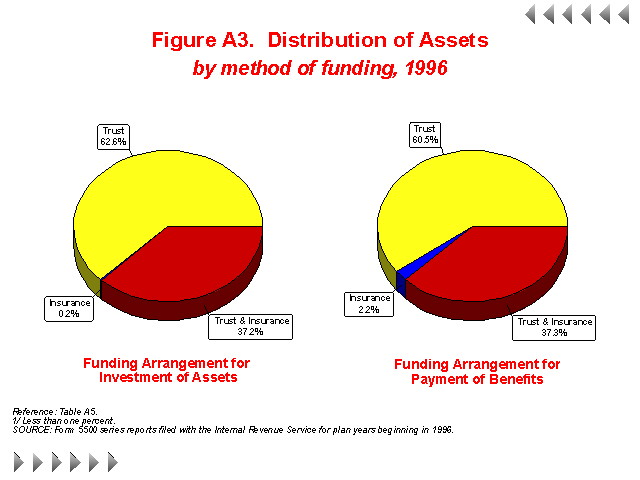 - Table A5: Amount of Assets in Pension Plans by type of plan and method of funding, 1996
