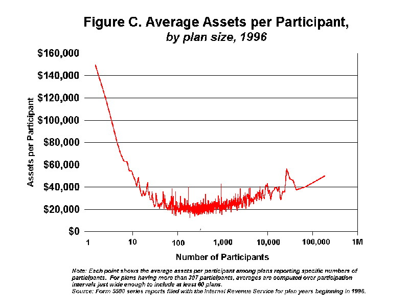 - Table C7: Percentage Distribution of Assets in Defined Benefit Pension Plans with 100 or More Participants by type of asset and size of plan, 1996