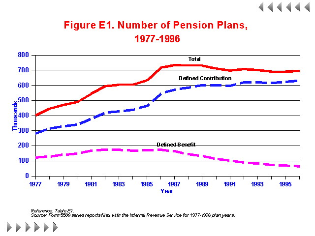 - Table E1: Number of Pension Plans by type of plan, 1977-1996
