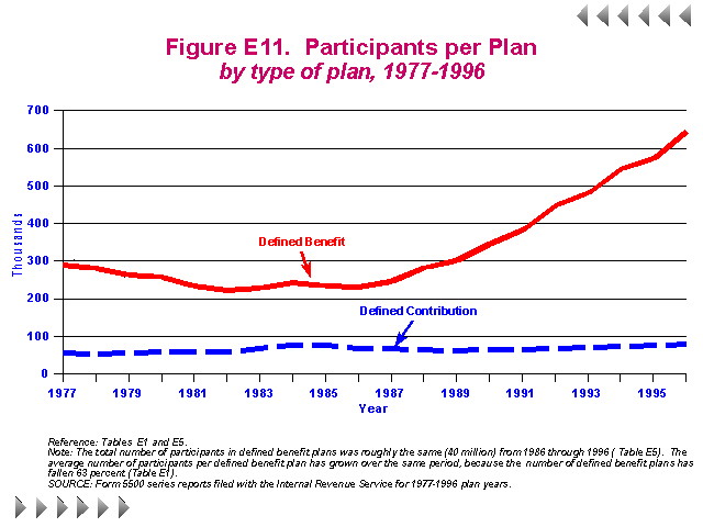 - Table E7: Number of Participants in Pension Plans with 100 or More Participants by type of plan, 1977-1996