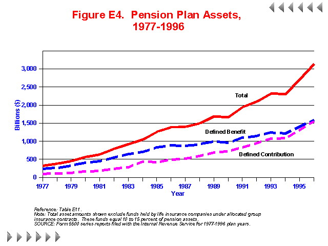 - Table E11: Pension Plan Assets by type of plan, 1977-1996