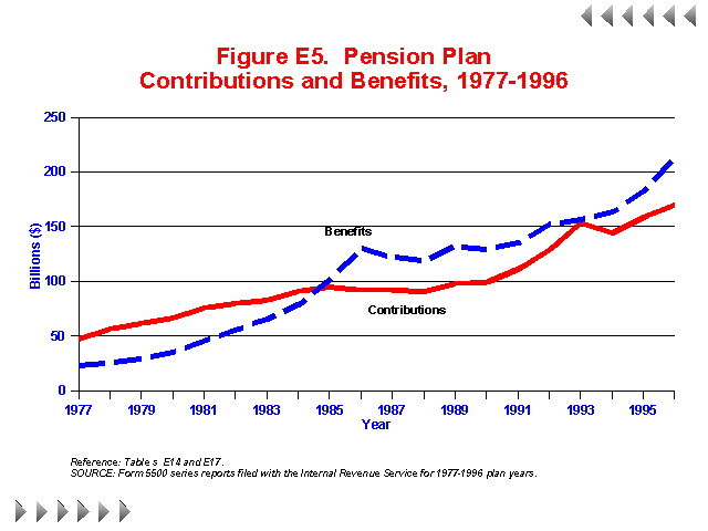 - Figure E5: Pension Plan Contributions and Benefits 1977-1996