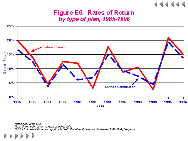- Figure E6: Rates of Return by type of plan, 1985-1996
