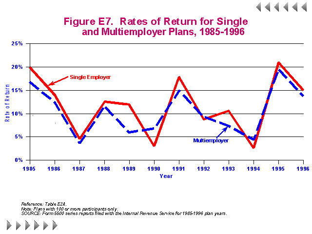- Figure E7: Rates of Return for Single and Multiemployer Plans 1985-1996