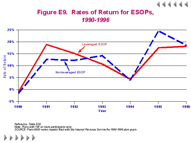 - Table E26: Aggregate Rates of Return Earned by Employee Stock Ownership Plans (ESOPs) and 401(k) Plans with 100 or More Participants 1990-1996
