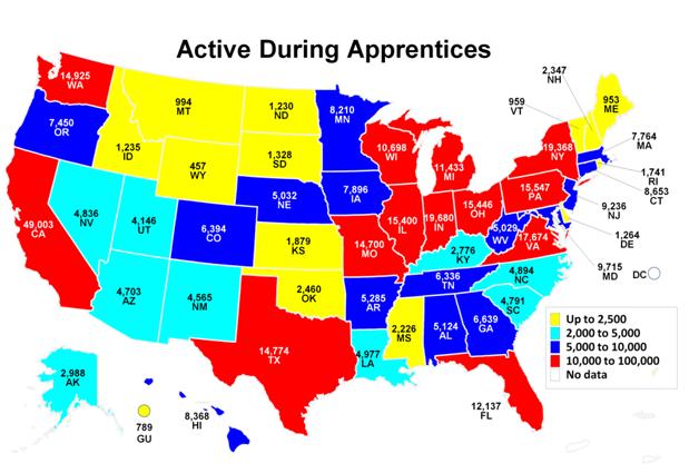 | Active Apprentices: | include registered (RE), suspended (SU), and reinstated (RI) apprentices. |