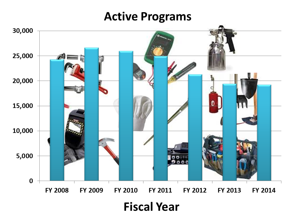 | Fiscal Year | Active Apprentices | New Apprentices | Total Completers | Active Programs | New Programs |