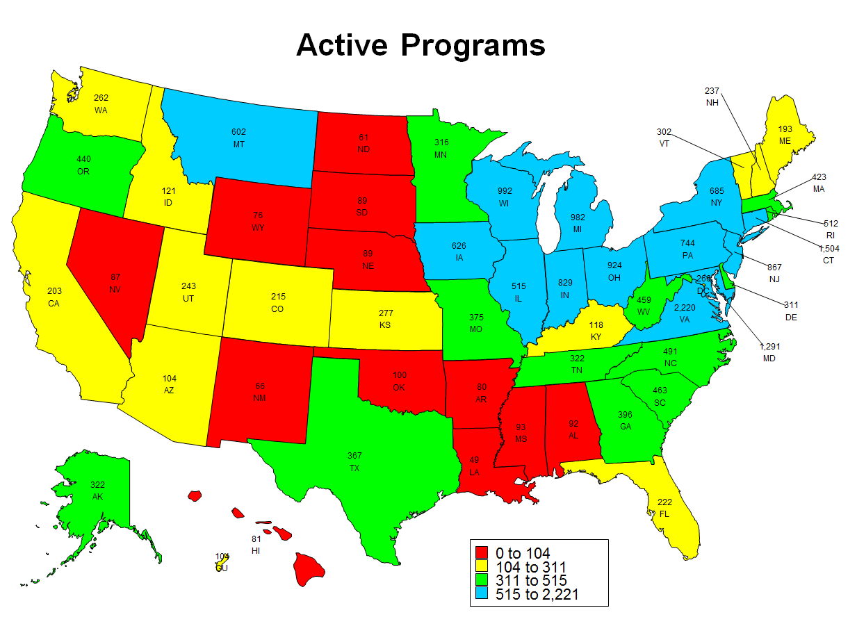 | Active Programs | 12,146 | 11,915 | 11,404 | 10,223 | 10,166 | 9,539 | 8,828 |
