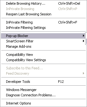- Click Tools. The Tools menu appears. Highlight Pop-up Blocker