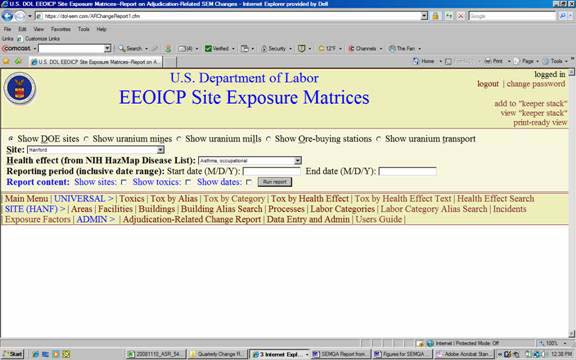 Figure 13. Adjudication-Related Change Report filtered on the occupational asthma (Asthma, occupational) health effect.