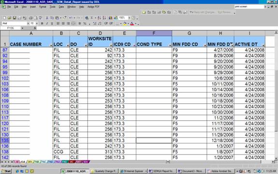 Figure 4. SEM Detail Report with ICD9 column filtered for disease code “173.3”.