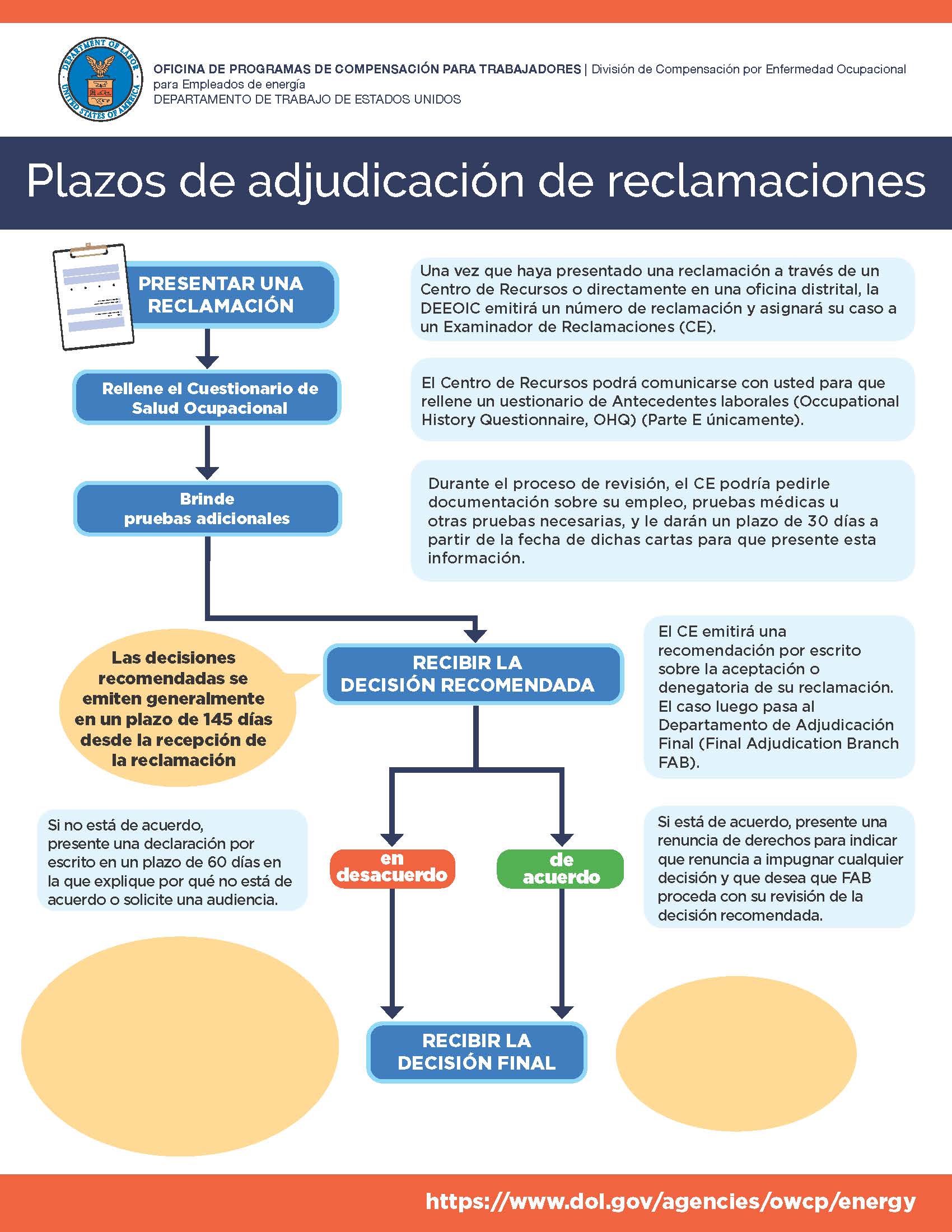 Es importante que lea atentamente primero y que entienda cualquier decisión que haya publicado la DEEOIC sobre usted. La decisión recomendada comunica los motivos por los cuales el programa acepta o deniega una reclamación. Puede incluir acciones sobre parte o toda la reclamación. La decisión recomendada también incluirá instrucciones por escrito sobre sus responsabilidades, según si está de acuerdo o no con la decisión. En caso de que usted o su representante no entiendan una decisión recomendada o las acciones que deba tomar para responder a una decisión recomendada, deberá contactarse de inmediato con el responsable de la oficina distrital de su reclamación.
