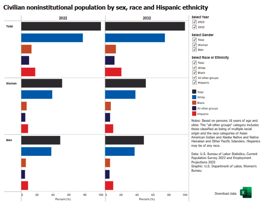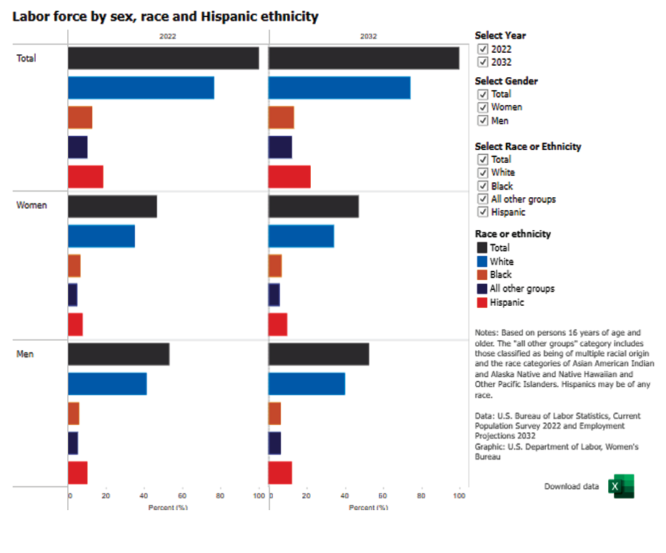 Labor force by sex, race and Hispanic ethnicity