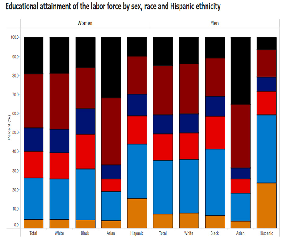 Educational attainment of the labor force by sex, race and Hispanic ethnicity