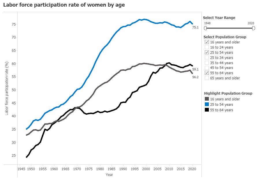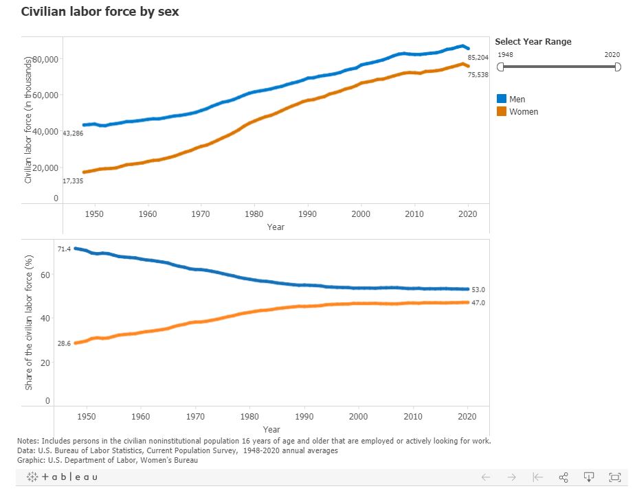 Find data on how selected labor force characteristics change over time. Labor force and earnings data are presented by sex, age, race and Hispanic origin, and parental status when available.