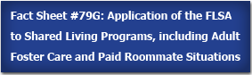 In response to these questions, we created the guidance on this page to help you determine whether a public entity or private third party agency, or an individual receiving services (or his or her family or other representative) is required to comply with the FLSA’s minimum wage and overtime requirements in paying a direct care worker who provides services through a shared living arrangement. The guidance also describes how certain FLSA principles (May sleep time be deducted? Does free rent count as wages?) apply to shared living arrangements.