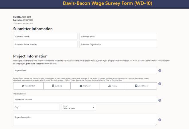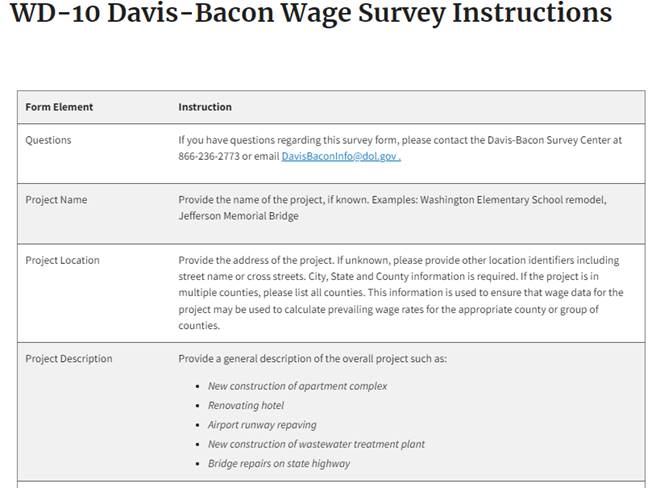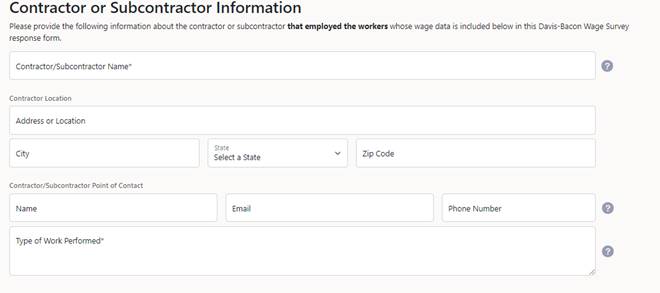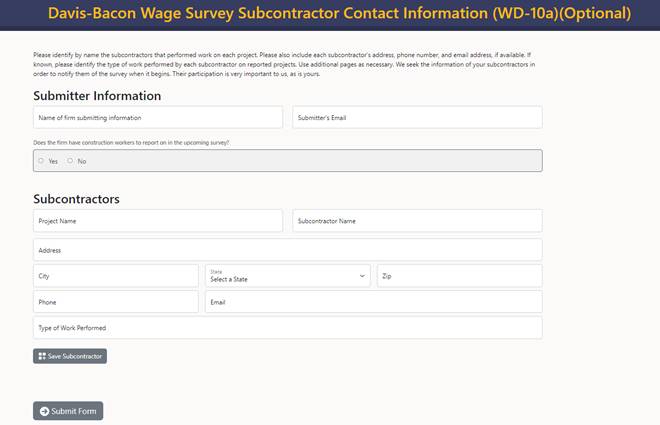 Davis-Bacon wage survey subcontractor contact information (WD-10a)