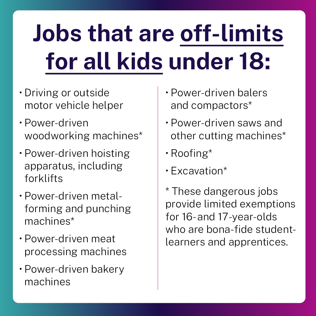 Ensure your child’s job does not jeopardize their health, well-being, or educational opportunities.