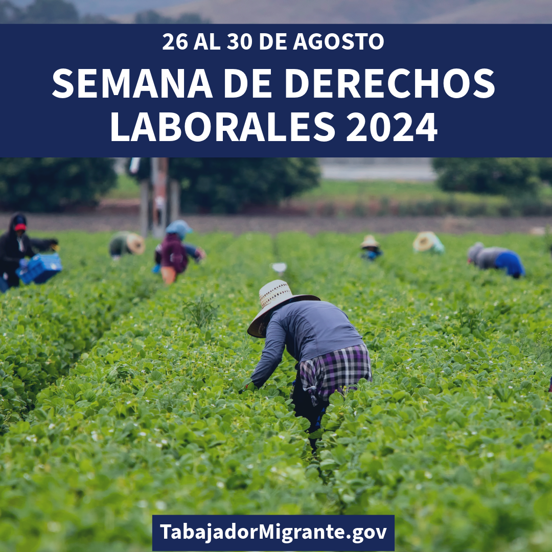 Este año estamos reconociendo la semana de #DerechosLaborales del 26 al 30 de agosto, centrándonos en los derechos, la salud y la seguridad para los trabajadores. Visite TrabajadorMigrante.gov para saber más sobre sus derechos en el trabajo. #SDL2024